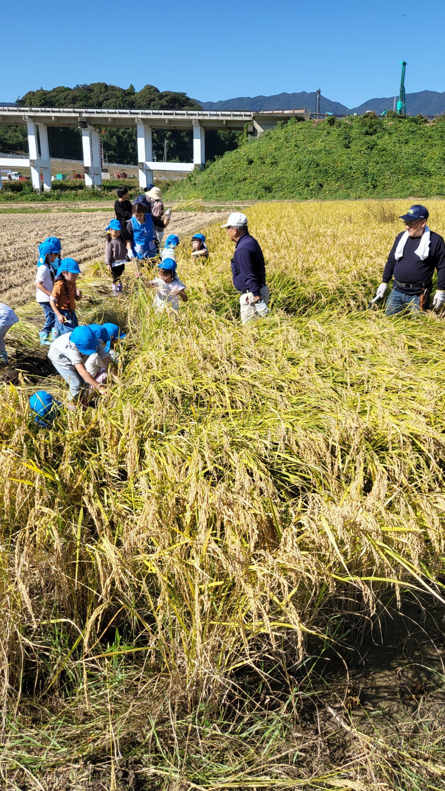 子どもたちが「大きくな〜れ」と優しく植えた稲が、こんなに大きくなったことを喜びながら、一生懸命、刈り取りました。