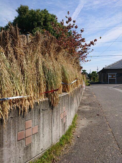 先日刈り取った稲を、はさ掛けして天日干しをしています。その稲をいよいよ脱穀する日が近づいてきました。